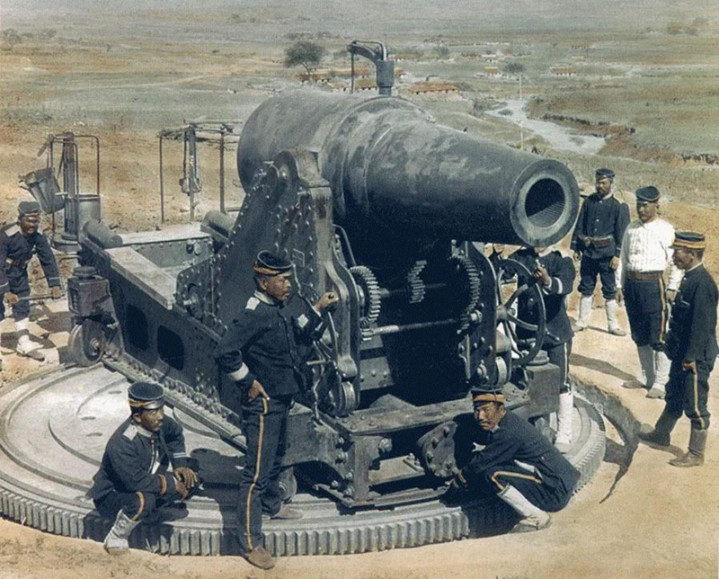 在1884年,英国阿姆斯特朗公司为日本研制了28厘米重型攻城炮,这款短管大炮很快成为日本的国防重器,磋议坐蓐了327门大炮。除了大部分用于原土海防,还有一些大炮参与了日俄干戈,此战让日军体会到了巨炮在战场上的价值。