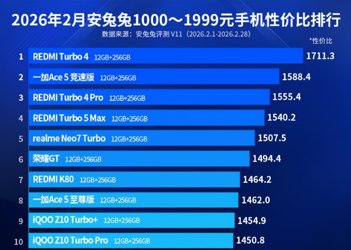 最近安兔兔公布了最新一期千元机性价比名次榜,看完总计榜单之后,我最大的感受唯唯一个:红米的总揽力太夸张了。不仅多款机型上榜,还平直包揽第一、第三、第四名,确切把这个价位段“打穿”。但有益念念的是,第二名却被一加抢走,这也让榜单变得更有看点。