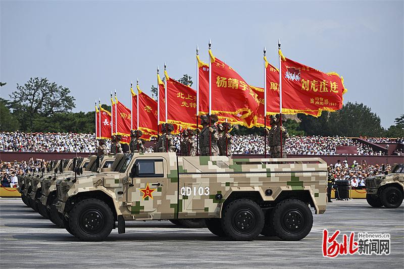 9月3日,记念中国东说念主民抗日干戈暨寰球反法西斯干戈凯旋80周年大会在北京恢弘举行。这是战旗方队通过天安门广场。 新华社发
