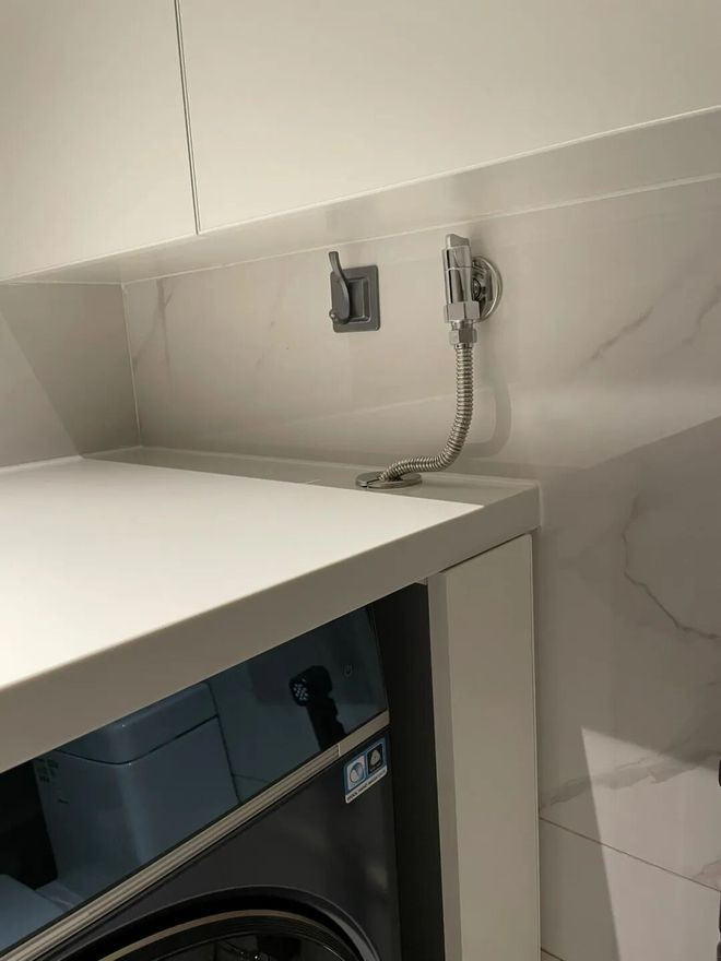 2、洗衣机进水需求,可以胜仗用原有的花洒冷水管,只需要装配一个角阀即可,而花洒滚水管则作念了禁闭处理。