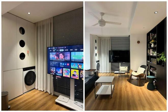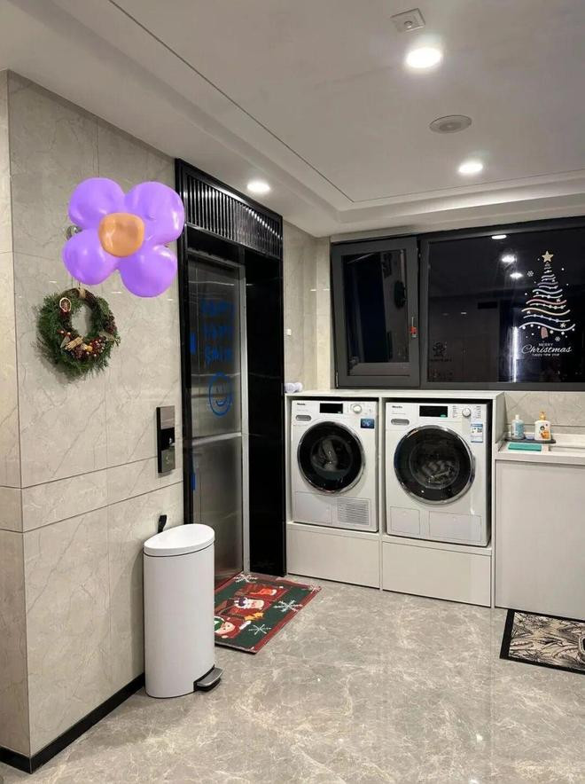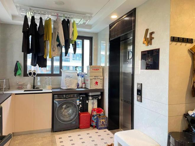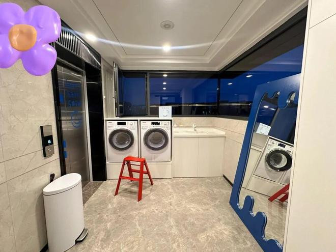 像「网友@homieR」就将其改成了一个多功能家政区,一出电梯门就可以顺手将脏衣裳脱下来扔洗衣机里清洗烘干,特别方便。