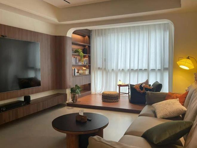 另外,你也可以参考「网友@李饱饱」家的有贪图,在阳台纳入客厅的情况下,欺诈不成拆的墙垛,假想一块隐形曝晒区。