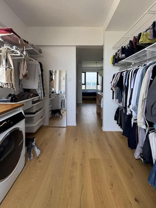 再比如「网友@Hoooome」亦然将洗衣建筑装配在了衣帽间,所有的洗涤需求在衣帽间里就可以完成。