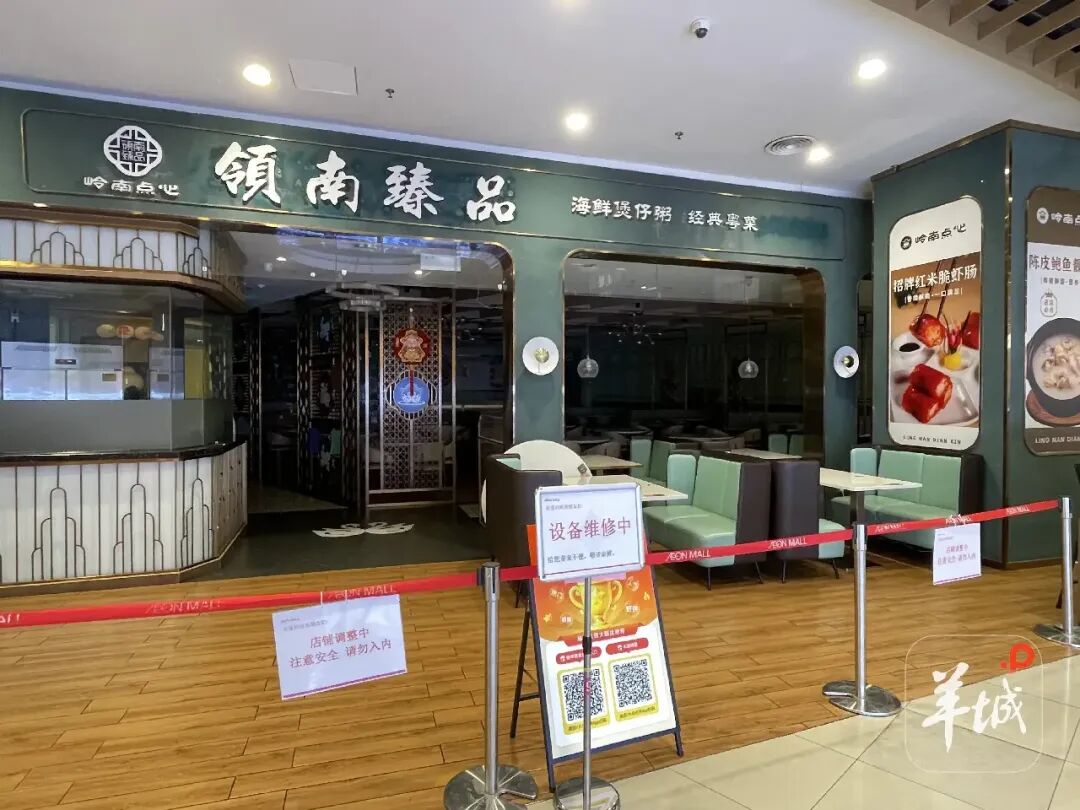 在领南臻品·粤菜茶点(永旺店)傍边餐饮店使命的大姨说:“这家门店在4月20日就莫得开了,平素都是早上10点开门贸易的。”